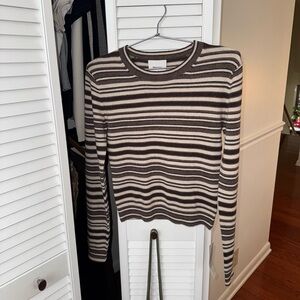 Reformation Lian Cashmere Crew Sweater in Brown Multi Stripe