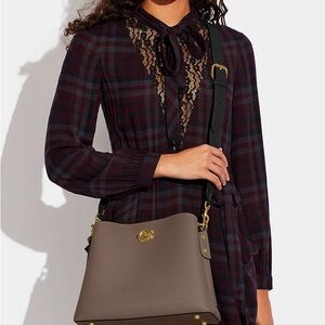 COACH•willow stone grey/black pebble leather bucket shoulder crossbody bag NWT