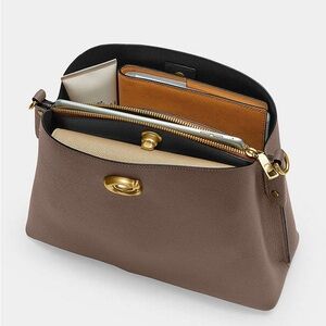 COACH•willow stone grey/black pebble leather bucket shoulder crossbody bag