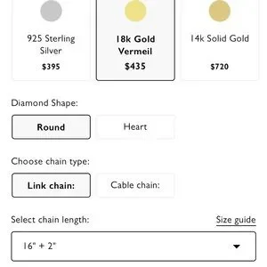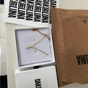 From Oak and Luna. This is practically new only wore two times. They do not do returns only store credit. That’s why I’m selling it. It’s too similar to another necklace I have. See below screenshots for all of the specifics. This is the 16 inch necklace. I did takeoff the 2 inch extender so it is only a 16 inch. This is not the petite paper clip necklace that has a smaller diamond. This is the nicer large larger diamond see screenshots from their website as seen on Instagram
