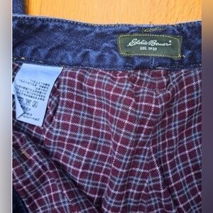 Eddie Bauer women’s blue denim jeans with cozy flannel lining throughout.