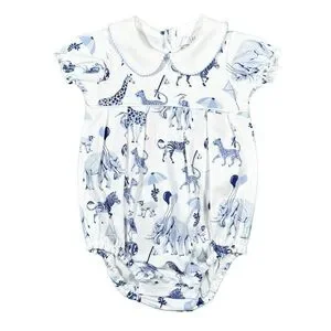 - Description: Introducing the Kids Girl's Safari Dress by Heyward House, featuring a delightful animal toile pattern in a stunning blue and white Chinoiserie style. This bubble romper, designed for play with its generous cut, boasts super soft 50:1 Interlock Pima Cotton, complete with a charming Peter Pan collar. Material:
