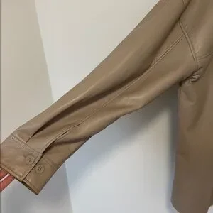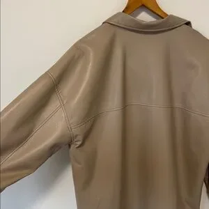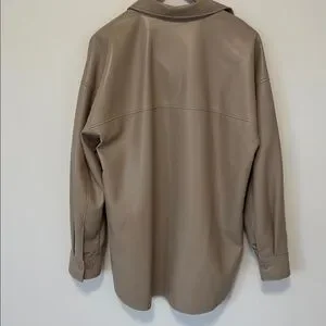 Babaton Pelli Shirt Jacket Vegan Leather Button-Down Relaxed Fit Cream SzL