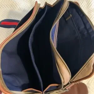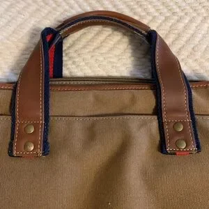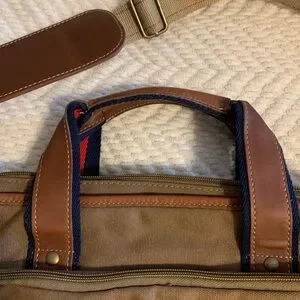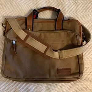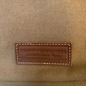 Tommy Hilfiger Heavy canvas and leather messenger bag or laptop bag in awesome condition. Strap is adjustable. Classic, classy, and timeless. Magnetic closure on back outside panel for quick access to documents/magazines.Leather hand straps. ALL zippers work. EUC