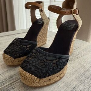 Tory Burch Navy Lace Lucia Espadrille Wedges size 6.5M