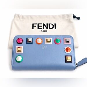 Pre-loved FENDI continental leather zippy wallet w/ rainbow studs.
