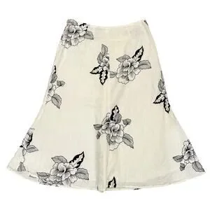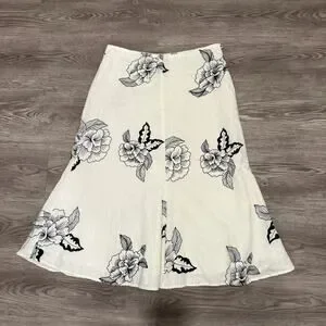 John Paul Richard 100% Linen Floral Skirt Black White Midi 8 Boho Cottage Chic