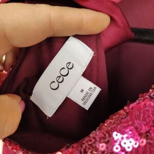 The CeCe NWT Mock Neck Sequin Floral Tie Scoop Back Top in size M is a stylish and glamorous blouse perfect for parties, weddings, or formal events. The top features a beautiful floral pattern with sequin accents, a mock neck with a tie closure, and a scoop back design. Made from polyester, this top is machine washable for easy care and is ideal for the summer, fall, and spring seasons. The multicolor design and basic style make it a versatile piece for any occasion, adding a touch of holiday or party glamoratti to your wardrobe.
