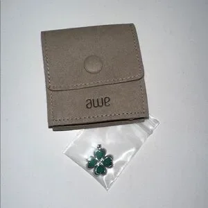 Awe Inspired Sterling Silver Green Onyx Lucky Clover Boho Necklace Charm Pendant