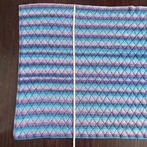 Striped Blue and Purple Hand Knit Baby Blanket