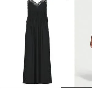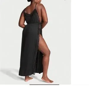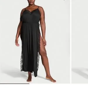Victoria secret Elegant Black Lace Trim Maxi pajamas with slit size small