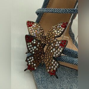 #Denim Heels#Denim Sandals#Butterfly Heels#Rhinestone Heels#Embellished Sandals#Crystal Heels#Strappy Heels#Ankle Strap Heels#Stiletto Sandals