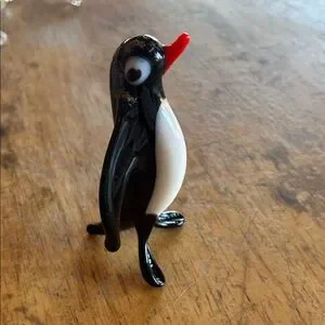 Charming glass penguin figurine in black and white. Perfect for bird lovers and collectors.