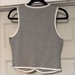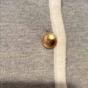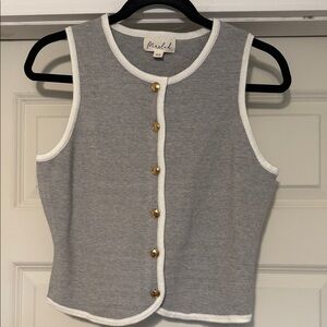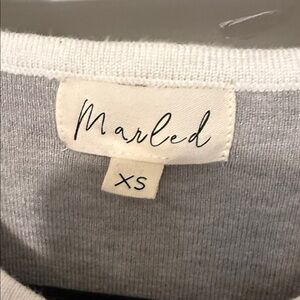 Chic knit top by Marled. Features a soft gray body with white accents. Perfect for layering.