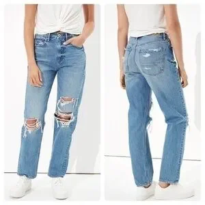 AE Favorite Boyfriend Distressed Ripped Light Wash
