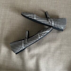 Vionic Alameda Mary Jane Flats in the Black Houndstooth colorway. This style features a sophisticated square toe and a biomechanically designed footbed for arch support.