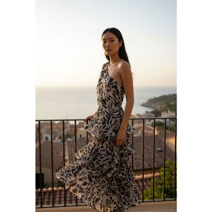 Alexis Beautiful One Shoulder Printed Dress with Side Slit and Tiered Ruffles