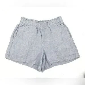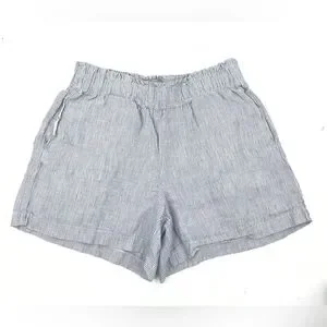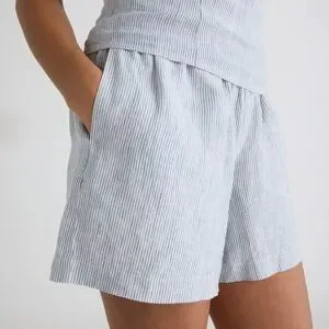 Quince European Linen High Waisted Shorts Womens Size Large Coastal Beach Stripe