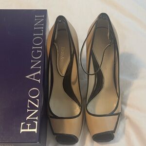 Step out in style with these elegant dark brown and tan women's heels. Ankle strap, small peep toe. Gorgeous! I hate to part with these, but I have a bad knee and they need to be seen!!!