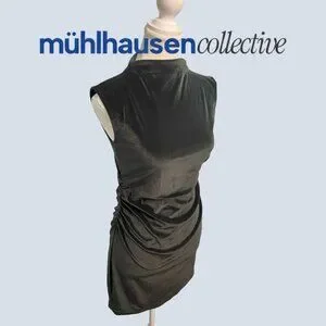 Chic black velvet mini dress by A New Day in size XS. Features a sleek sleeveless silhouette with a soft mock neckline and flattering side ruching that creates a subtle draped effect through the waist and hips.