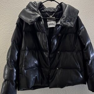 Elegant black puffer jacket with a stylish design. Ideal for chilly days.