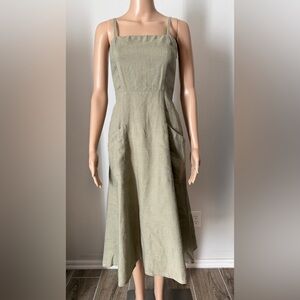 pepito’s 100% linen sage green dress with pockets and adjustable straps