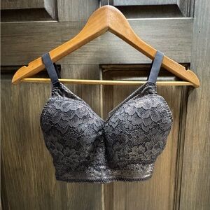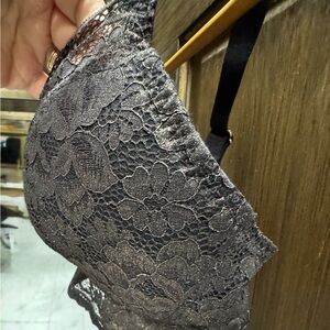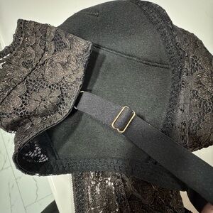 Knix wireless Lace sexy black with metallic shine bra. Soft and supportive. Ideal from daily comfort to evening, great looking under a sheer top!