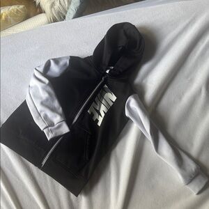 Sleek black joggers and zip up sweater with white side stripes. Perfect for active kids. Nike logo detail adds style. Does have few snags on the sleeves, see the pictures for defects. Ask any questions or additional pictures.