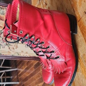 Diamond J Justin sz 7D Boots Red Leather Western Lace-up Boot
