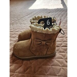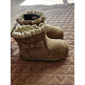 NWT Wonder Nation Toddler Girls Chestnut Tan Boots Faux Shearling 18 Mos, Size 6