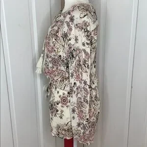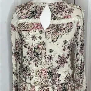 Color is Cream with Black, Pink, & Green Floral Print