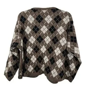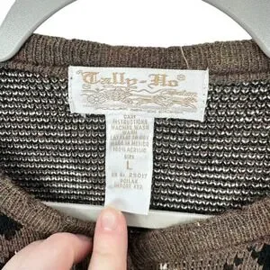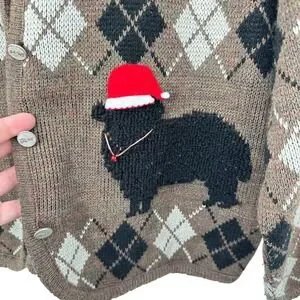Vintage Tally-Ho Argyle Sheep Christmas Cardigan Sweater Brown Quirky Grannycore