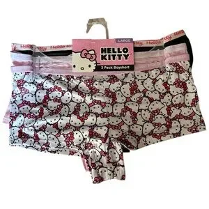Adorable Hello Kitty 3 pack boy-shorts in size Large. Features cute designs in white, pink, and black. Comfortable and stylish.