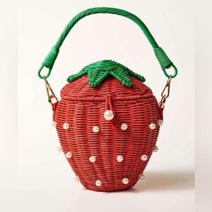 Adorable and eye-catching Kate Spade x Target strawberry-shaped straw bag! This structured wicker bag features: