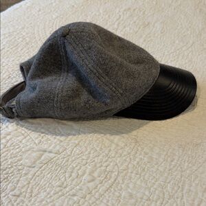 Stylish J. Crew cap with a gray wool crown and black leather brim. Perfect for casual outings.