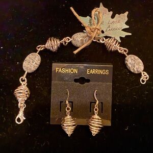 Grey and black jasper laced silver earrings and bracelet set, perfect for adding a touch of sophistication to any outfit.