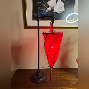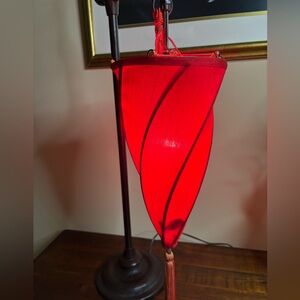 Illuminate your space with this stunning red Art Deco lamp. Its unique design adds a touch of elegance to any room.
