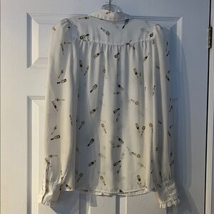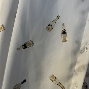 Stylish white top by Blousology featuring a unique wine bottle design. Ideal for casual outings.