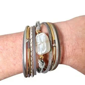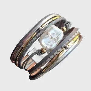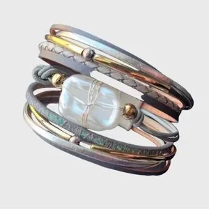 This stunning multi-layered bracelet features elegant gold and silver tones, perfect for adding a touch of sophistication to any outfit. The intricate design and shimmering accents make it a must-have accessory.
