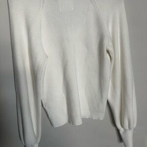 Elevate your basics with this gorgeous cream/white ribbed sweater from Abercrombie & Fitch. Features a flattering V-neckline and trendy balloon sleeves with tapered cuffs. The material is a soft, mid-weight knit—perfect for tucking into high-waisted jeans or pairing with a midi skirt.
