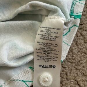 This stunning Maeve blouse features a vibrant green and white botanical floral print. The design includes a flattering ruched center front with button closures and a classic v-neck collar.