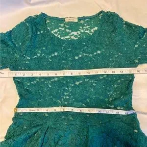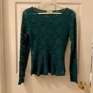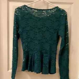 Beautiful long sleeved see-through lacey peplum top. Measurements are in the pictures.