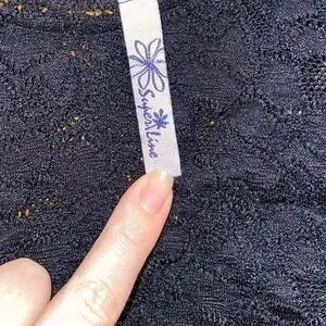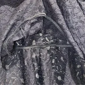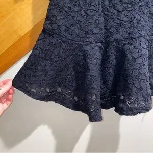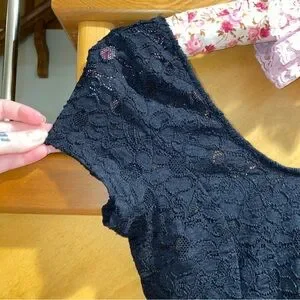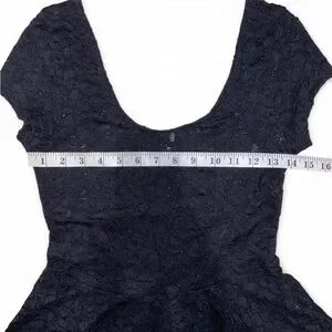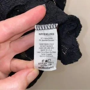 Sheer black lace peplum style top from the brand “Superline” made in the USA. Size medium measuring approximately 14" ptp and 26" around at the smallest point on the waist. Material is slightly stretchy with an elastic waist. Comfortable and very flattering. Only worn once.