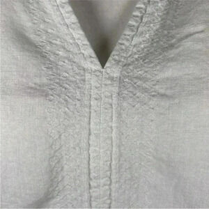 Add a touch of bohemian style to your wardrobe with this House of Harlow REVOLVE Linen Embroidered Top in size medium. The V-neckline and pullover closure make it a versatile piece for travel, casual outings, or workwear. The white color and solid pattern give it a classic look, while the embroidered accents add a unique touch.