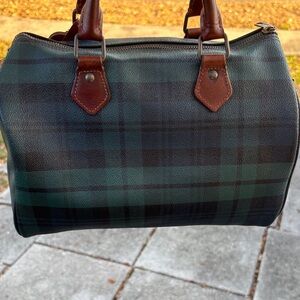 VINTAGE Ralph Lauren Green Plaid Speedy/Boston Medium Size Handbag