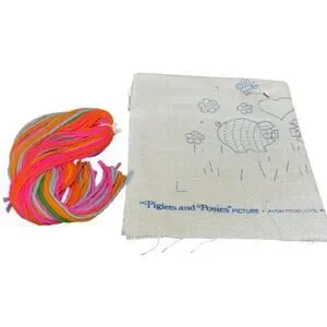 Vintage 70s Avon Piglets and Posies Crewel Wool Embroidery Needlework Craft Kit
