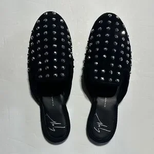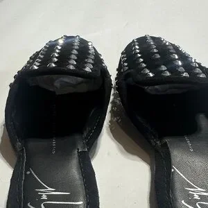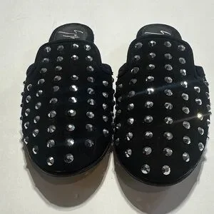 Giuseppe Zanotti Black suede Mules with Silver Studs low heel made in Italy 36