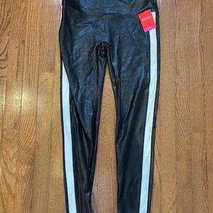 Designed with a contoured Power Waistband, these pants offer tummy shaping and a perky bottom so you look and feel your best. The high waisted design adds even more to this flattering fit, and the cool side stripe elongates your legs while adding a touch of style. High-waisted design for great coverage and no muffin top Center-seam free Support Level 2: Shape - A Firm Hug. Materials & Care: 87% Nylon, 13% Elastane Care Instructions: Machine wash cold, gentle cycle with like colors. Do not use fabric softener. Use only non-chlorine bleach when needed. Line dry. Do not iron