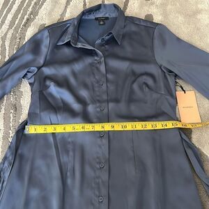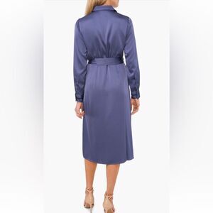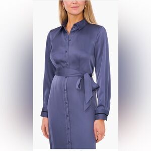 Halogen Long Sleeve Satin Belted Midi Shirtdress