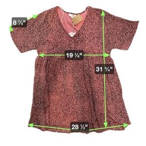 Umgee Pink Leopard Print Babydoll Mini Dress Tunic V-Neck Short Sleeve M NEW